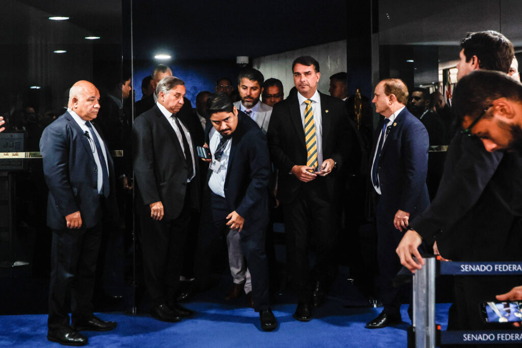 Senadores como Rogério Marinho (PL-RN), Flávio Bolsonaro (PL-RJ) e outros nomes da oposição se apoderaram da mesa do plenário do Senado na terça-feira (5) em protesto contra a prisão domiciliar do ex-presidente Jair Bolsonaro (PL).