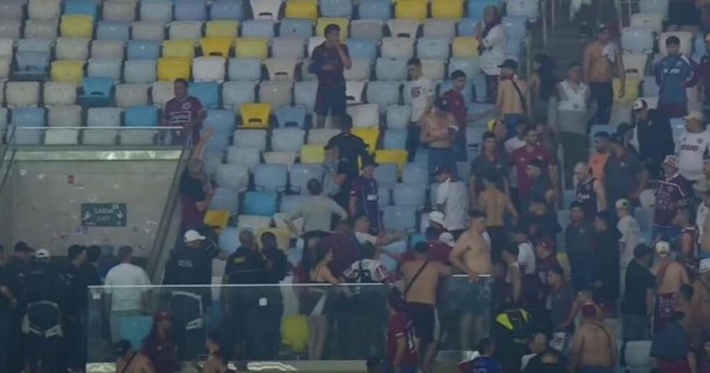 Cenas lamentáveis no Maracanã. Um conflito entre a Polícia Militar do Rio de Janeiro (PMERJ) e a torcida do Lanus atrasou o segundo tempo do jogo contra o Fluminense, nesta terça-feira (23), pela Sul-Americana. Dessa forma, o árbitro venezuelano Jesus Valenzuela não autorizou o reinício da partida.
