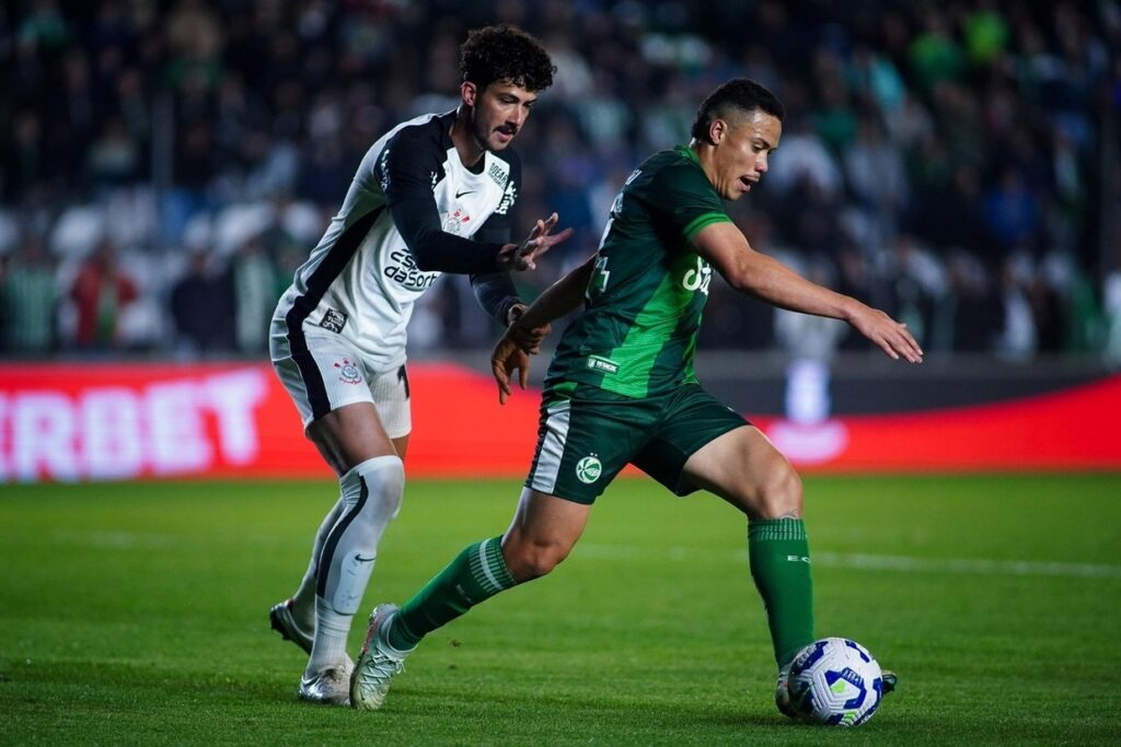 O começo do jogo esteve mais travado, com o Corinthians dono da bola e apelando para cruzamentos na área. Aos 15, Rodrigo Garro quase marcou um golaço olímpico, mas o goleiro Ruan salvou na junção da trave com o travessão. Do outro lado, o Juventude encontrou espaços no ataque, mas pecou por nervosismo e acumulou erros no último terço.