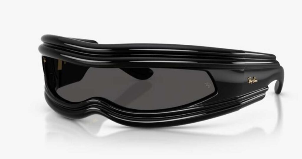 A$AP Rocky assina a coleção Next Generation com Ray-Ban, marcada por uma estética futurista ultraenvolvente. O destaque é o Ultra Wrap 001, óculos em formato de escudo com armação irregular e silhueta de máscara, que envolve o rosto com precisão. Feito em náilon polido preto, com lentes ultra pretas de cobertura ampla, o modelo traduz visão arrojada e espírito destemido. Criado para quem enxerga o futuro como um território a ser explorado com atitude. Mas há outras opções de cores que incluem até um branco com lente dourada. Custa de R$2.790 a R$ 2.900, dependendo da cor, no site e lojas próprias da marca.
