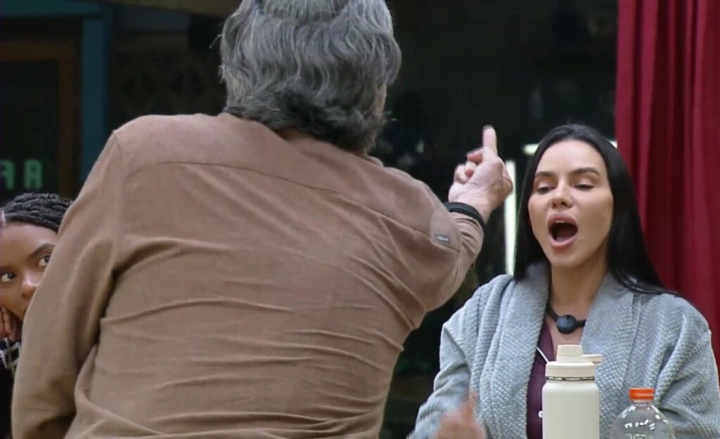 No auge da briga, Fernando mencionou o ex de Tàmires, o campeão do “BBB 24” Davi Brito, com quem a peoa trava uma disputa judicial. “Qual o seu intuito? É o mesmo jogo do seu ex? Vai lá, Davizinha! Fez escola! Babaca tanto quanto ele”, disse, mostrando o dedo do meio para a dançarina. “Calma”, pediu a manauara.