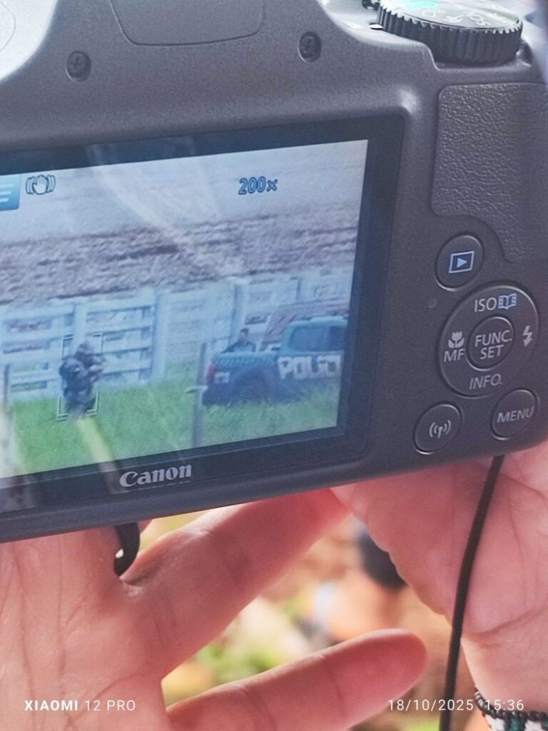 Indígenas acumulam provas de que as polícias estaduais estão na sede da fazenda desde o início da retomada, em 21 de setembro. Foto: Comunidade do Guyraroká
