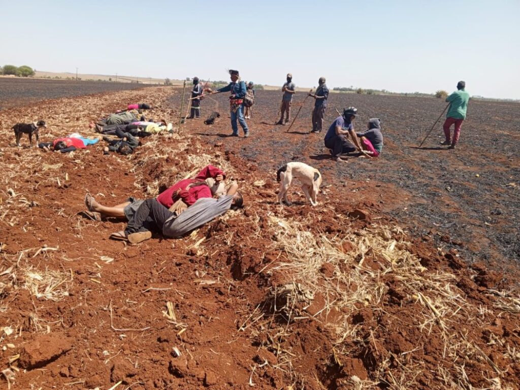Os Guarani e Kaiowá interpretam como um aviso macabro a crescente crueldade dos jagunços nos ataques à retomada da Fazenda Ipuitã, área sobreposta à Terra Indígena Guyraroká, em Caarapó (MS). Entre os ataques, os agressores enterraram dois cães vivos. Além disso, os indígenas recolheram cápsulas de bombas de gás vencidas utilizadas pela polícia – artefatos que, em certas circunstâncias, podem causar queimaduras graves na pele, nos olhos e nas mucosas.